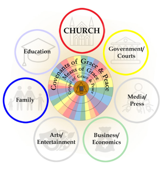 Christians across the generations have united to emphasize Trinitarian leadership in the above 7 spheres. Ideally, the leaders of churches, families, governments and related mediating institutions all focus on the leading of the Spirit, the Lordship of Christ, and the love of God, the lawgiver. Mediating instution leaders come to know and reflect the character of the Father, Son and Holy Spirit through the means of grace: the Word, prayer, and sacraments. These means of grace have practical applications on the 7 mountains through preaching, prayer, and peacemaking; see, e.g., covenant.net/MeansOfGrace.