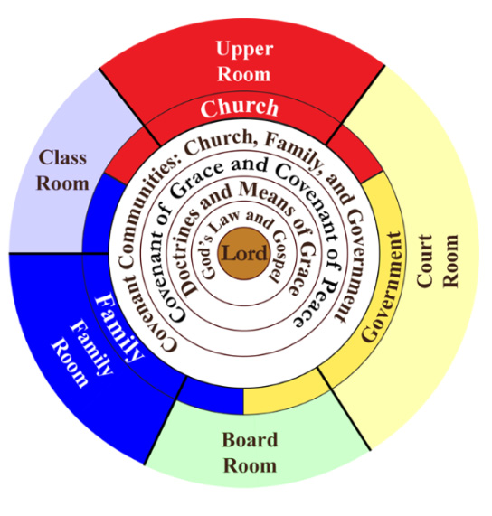 When church, family and governmental leaders promote fundamental rights, all faiths will have ample opportunities to build educational, religious, governmental (judicial), business, arts, media, and family institutions that honor God. Faiths without proven templates in these 7 areas will struggle and turn to the government for help with what the family and religious congregation can do best. Faiths with proven templates can show that there are familial and religious solutions to overcome the problems throughout culture. To learn more about these proven templates for strengthening relationships on the 7 mountains, see the following diagram, which explains how God (as He makes Himself known through the means of grace, doctrines of grace, and covenant of grace) undergirds the government, family, and church (www.covenant.net/3Institutions) as well as "rooms" where Godly people gather while affirming the Lordship of Christ. See, e.g. www.Covenant.net/5Rooms. For more information about how these 3 institutions and 5 rooms form a foundation for God-honoring culture, see www.Covenant.net/1000Points. To see how 7 Mountain theology differs from dominionism/nationalism, see the Venn diagram at the bottom of this page[2]. Please also see related content at the following links: